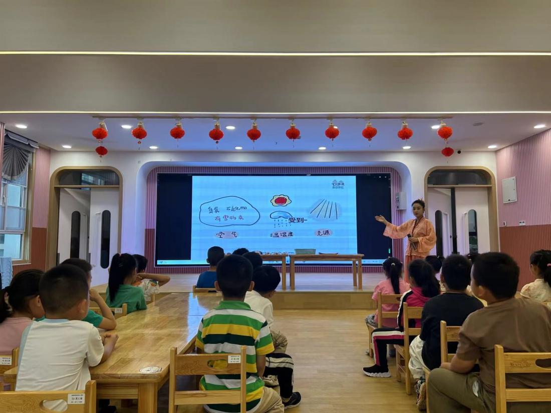 活动伊始,宣讲队老师向孩子们分享了一个生活中的小道理:“我们的家长和老师经常教导我们要珍惜资源、避免浪费。但是,你们是否知道,‘节约’这个词其实源自于一件距今已有3000多年历史的青铜器呢?让我们一起探索它的故事吧。” 随后播放了视频动画,视频中通过动画形式展示了“节约”的起源——它原本是一种安装在古代车辆上防止车轮脱离轴心的小部件。这个发现让现场的小朋友们既惊讶又好奇,不仅让孩子们了解了“节约”一词从古至今所承载的文化意义及其重要性,同时也深刻体会到了古人智慧与节俭美德的价值所在。