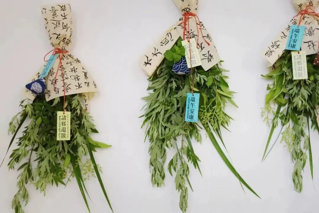在端午节,人们把插艾草和菖蒲作为重要内容之一。古人认为,端午即午月午日,阳气最为旺盛之时,是草木在一年中药性最强的一天,所以在这天采药、挂艾草等会有特别的功效。菖蒲的叶子形状似剑,民间称之为“水剑”,寓意其可“斩千邪”;艾草代表招百福,是一种可以治病的药草,插在门口,可使身体健康。
