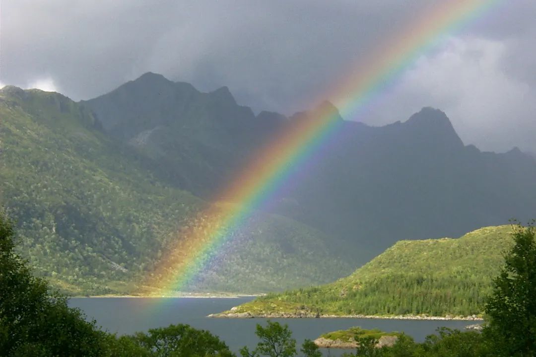 清明时节,雨水增多,云层稀薄,阳光穿透雨滴形成彩虹,这是春天气候变化的一个标志。