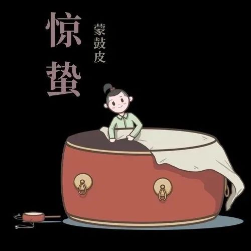 《周礼》卷四十《挥人》篇上说:“凡冒鼓必以启蛰之日。”(注:“惊蛰,孟春之中也,蛰虫始闻雷声而动;鼓,所取象也;冒,蒙鼓以革。”)