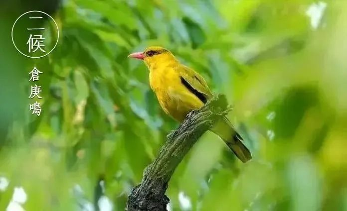 春日载阳,有鸣仓庚。仓庚,黄鹂也。惊蛰后五日,黄鹂最早感春阳之气,嘤其鸣,求其友。仓为青,青为清,庚为更新。