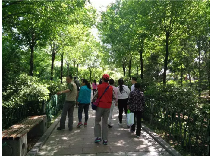 林荫小道上弥漫着花儿的芬芳,游人纷纷陶醉在这片花海之中。