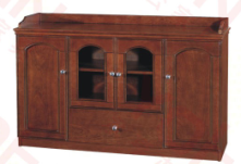 | 茶水柜 | 基材:选用吉象”E1级环保型中密度纤维板,并经防虫、防潮、防腐等技术处理,强度高不变形;达到国际握钉测试标准,比重合理。面材及封边:选用进口胡桃木皮贴面,木皮厚度0.8㎜,实木封边。油漆:大宝”环保聚酯漆。贴面胶水:德国”牛头牌”等环保型胶水。五金件:选用德国海福乐”进口连接件。 | ![]() | 1200*400 | 1个 |