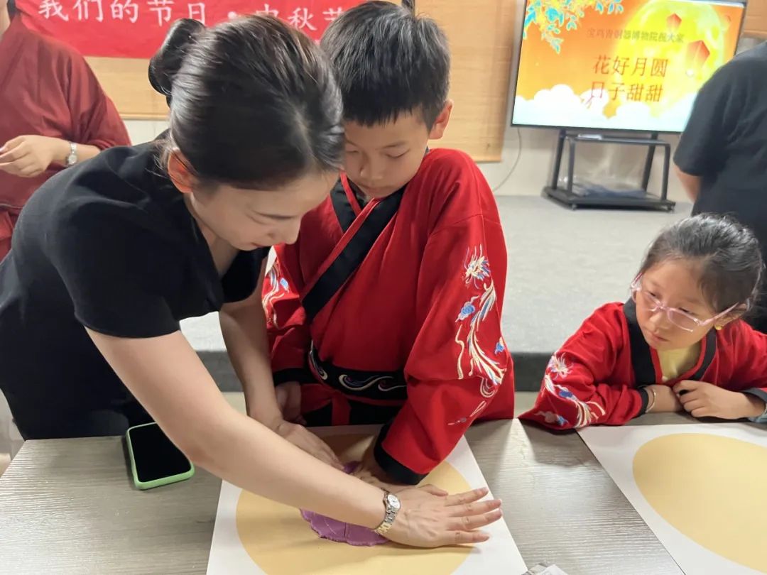博物院为小朋友们还准备了“镜中月 拓中秋”和“中秋佳节金箔闪耀”拓印手工活动。
