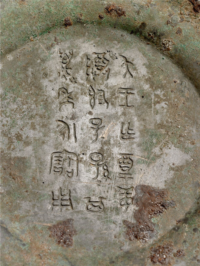 折沿,圈形捉手,圆唇外侈,上有一对穿孔,盖面饰两道瓦纹和一周有目的分解窃曲纹,窃曲纹分两组,每组以”S”形饰为轴对称分布,以极浅阳纹为地,捉手内盖环饰四个重环纹。盖内有铭文3行17字(含重文),“夨王作郑姜尊簋子=孙=其万年永宝用”。这件器物的出土对研究西周夨国的历史具有重要意义。