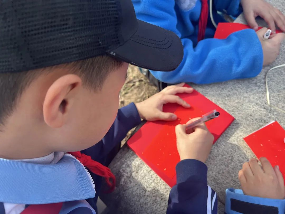 赏花结束后,孩子们在花笺上认真的书写着心愿,将美好的心愿传达给美丽的春天