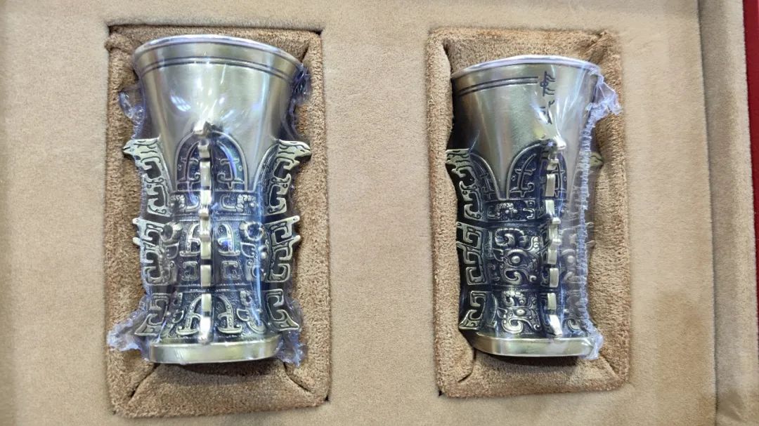 开发何尊·对杯,首先让“尊”回归到酒器,在保留了铜的材质基础上,更好的凸显了形制纹饰。外铜内银的结合,让何尊·对杯成为贵金属酒具的上乘之作。