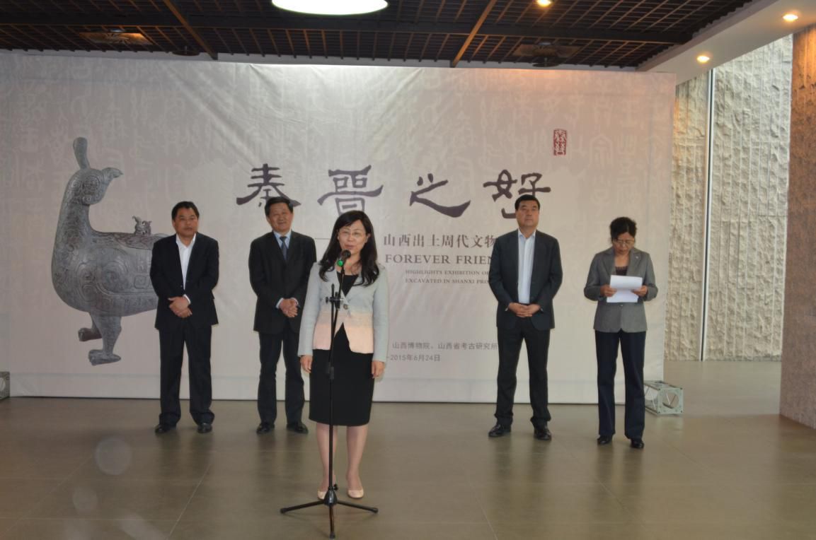 4月28日,《秦晋之好—山西出土周代文物精品展》在 隆重开幕,宝鸡市人民政府副市长丁琳、山西博物院院长石金鸣、宝鸡市政府副秘书长葛君琪、宝鸡市文物旅游局长徐烨和 副院长陈亮出席了开幕式。