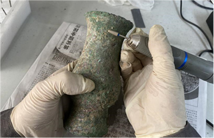1、成果:近三年修复青铜器291件;陶俑3件;铜镜4件。 15BZM3:1西周素面圆鼎修复前 15BZM3:1西周素面圆鼎修复前 2、部分文物修复成果照片:3、工作照: