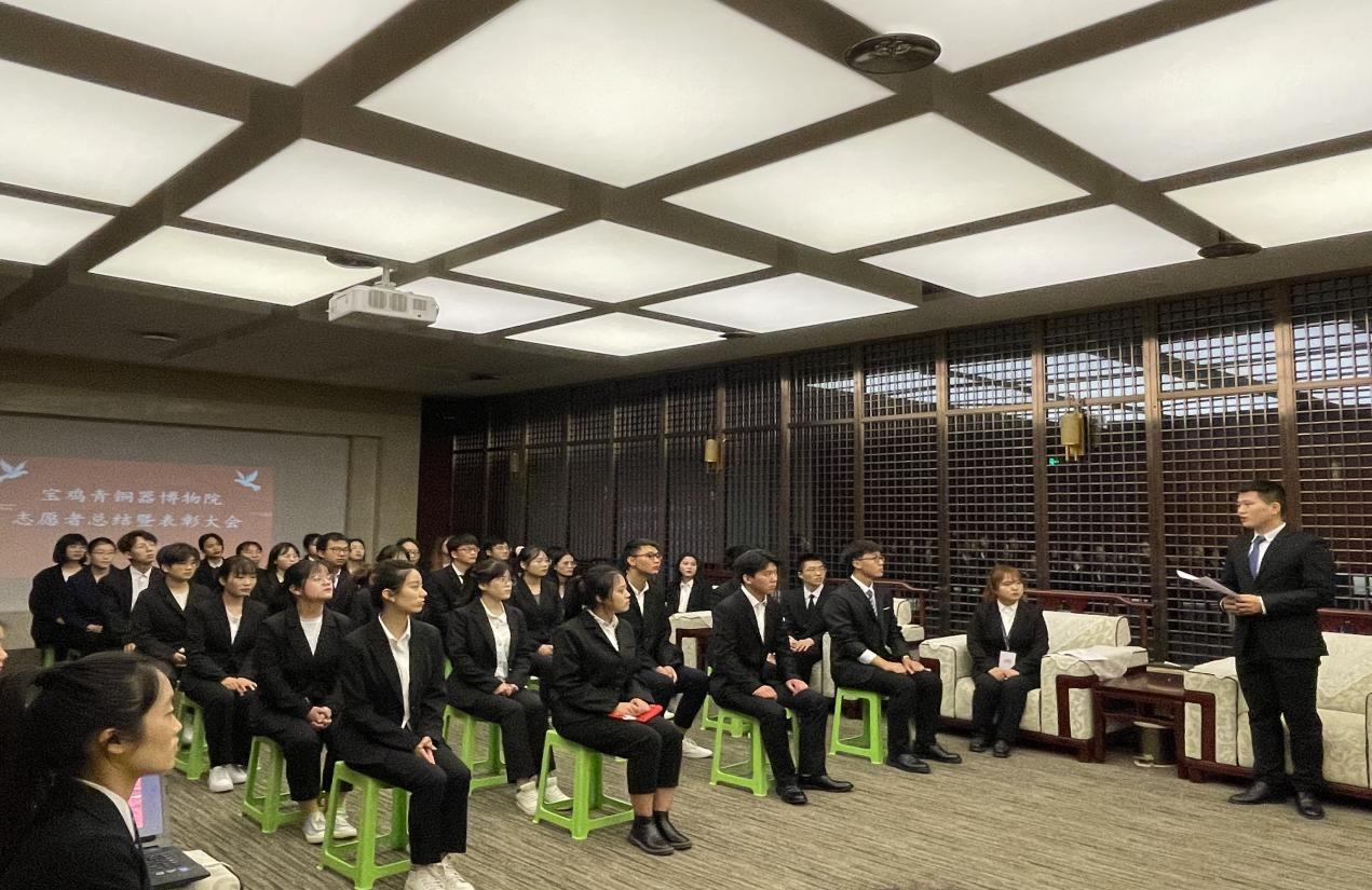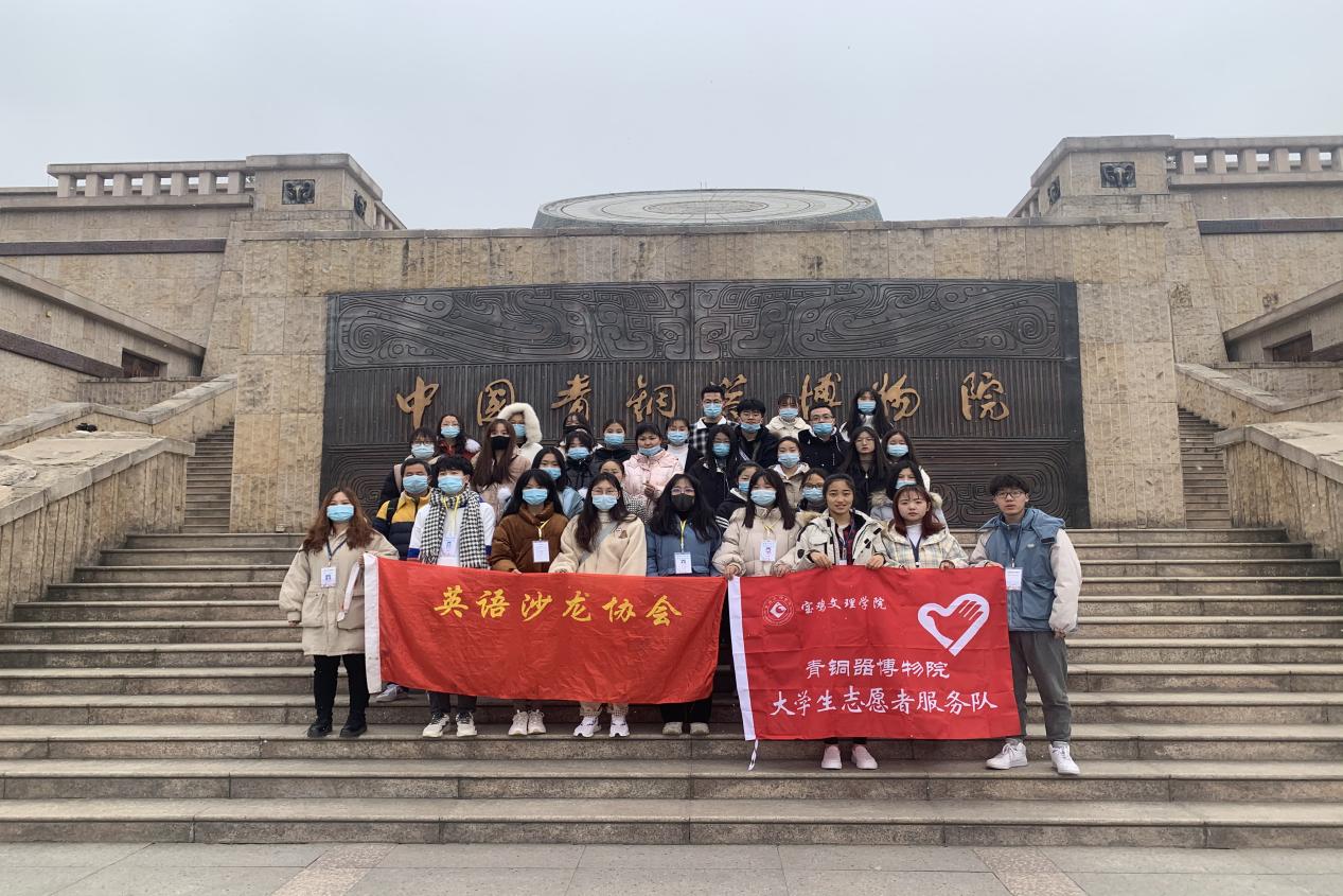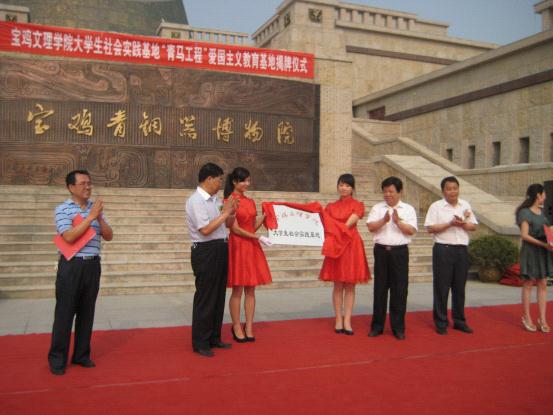 以爱国主义精神为主题,开展五四活动, 宝鸡文理学院30余名大学生诵读《诗经·秦风·无衣》, 发扬爱国精神,志愿者们带领大家参观讲解博物馆, 并进行书写金文“中国”和“拓印青铜纹饰”等活动。
