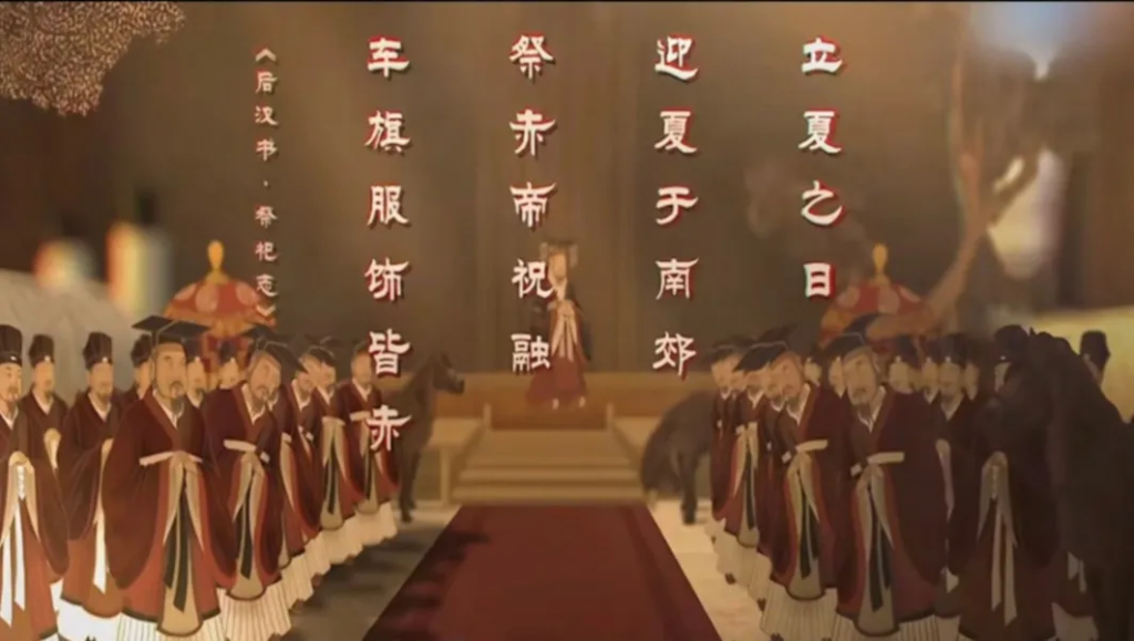 周朝就有盛大的立夏祭祀, 《礼记·月令》载:“立夏之日,天子穿朱色礼服,佩赤玉,乘赤辂,载赤旗,亲率三公九卿,迎夏于南郊,祭祀南方之神,司掌夏季火德的祝融,以迎接火德,顺应夏季”生长”之气。